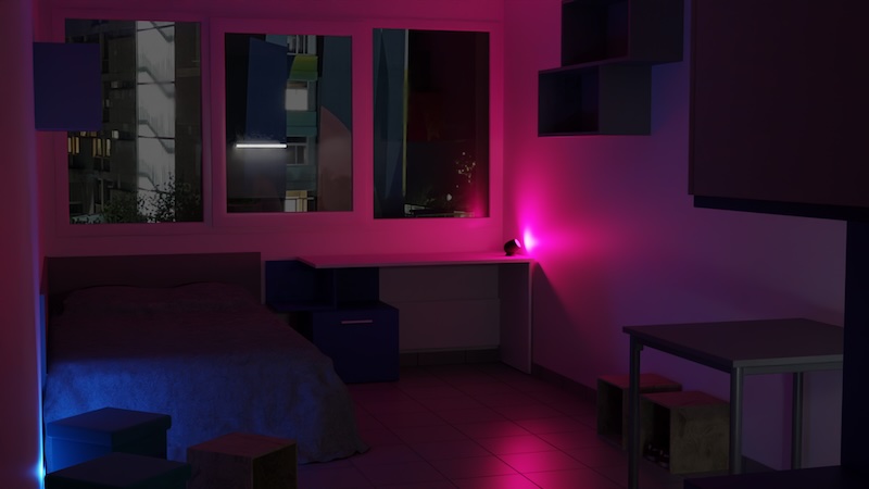 Durant mes études de master, j'ai modélisé en 3D mon propre studio, en mettant l'accent sur une reproduction fidèle de l'espace. J'ai également créé les textures et les éclairages, et ajouté des détails comme des poils sur le plaid du lit pour plus de réalisme. Cette modélisation a permis de visualiser en détail l'agencement et le design de mon studio, offrant une vue précise de l'aménagement intérieur.