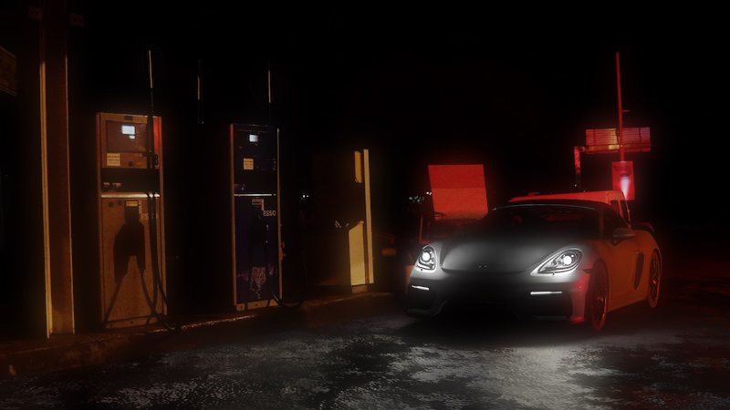 Un jeu de lumières mêlé à un environnement HDRI a permis d’ajuster les reflets et l’éclairage pour une meilleure intégration. Le compteur de la station-service a été animé pour afficher la montée progressive du carburant et incrusté en suivant les mouvement de caméra. Enfin, le compositing a affiné l’harmonisation des éléments grâce aux ombres et aux ajustements colorimétriques.