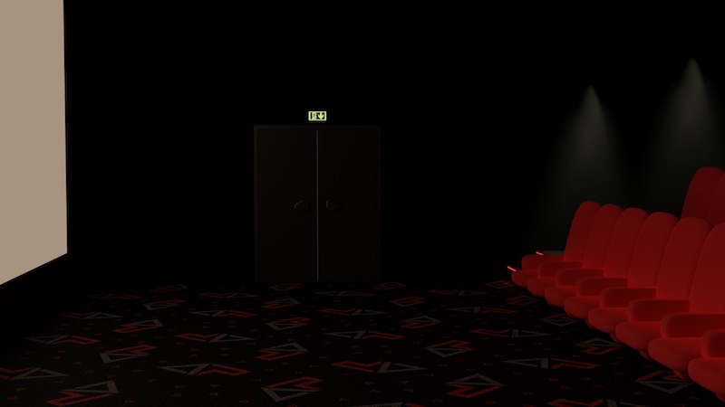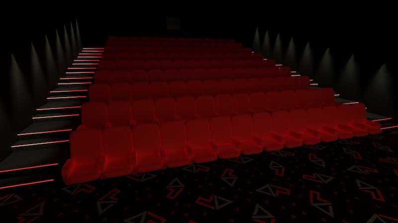 Dans le cadre d'un projet personnel, j'ai modélisé une salle de cinéma en 3D, inspirée par le design élégant des salles Gaumont.