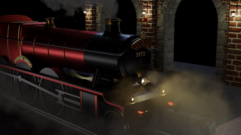Un travail personnel de maquette 3D inspirée de la célèbre saga Harry Potter, reprenant une partie du quai 9¾, la locomotive du Poudlard Express et un chariot à bagages traversant le mur de la gare.